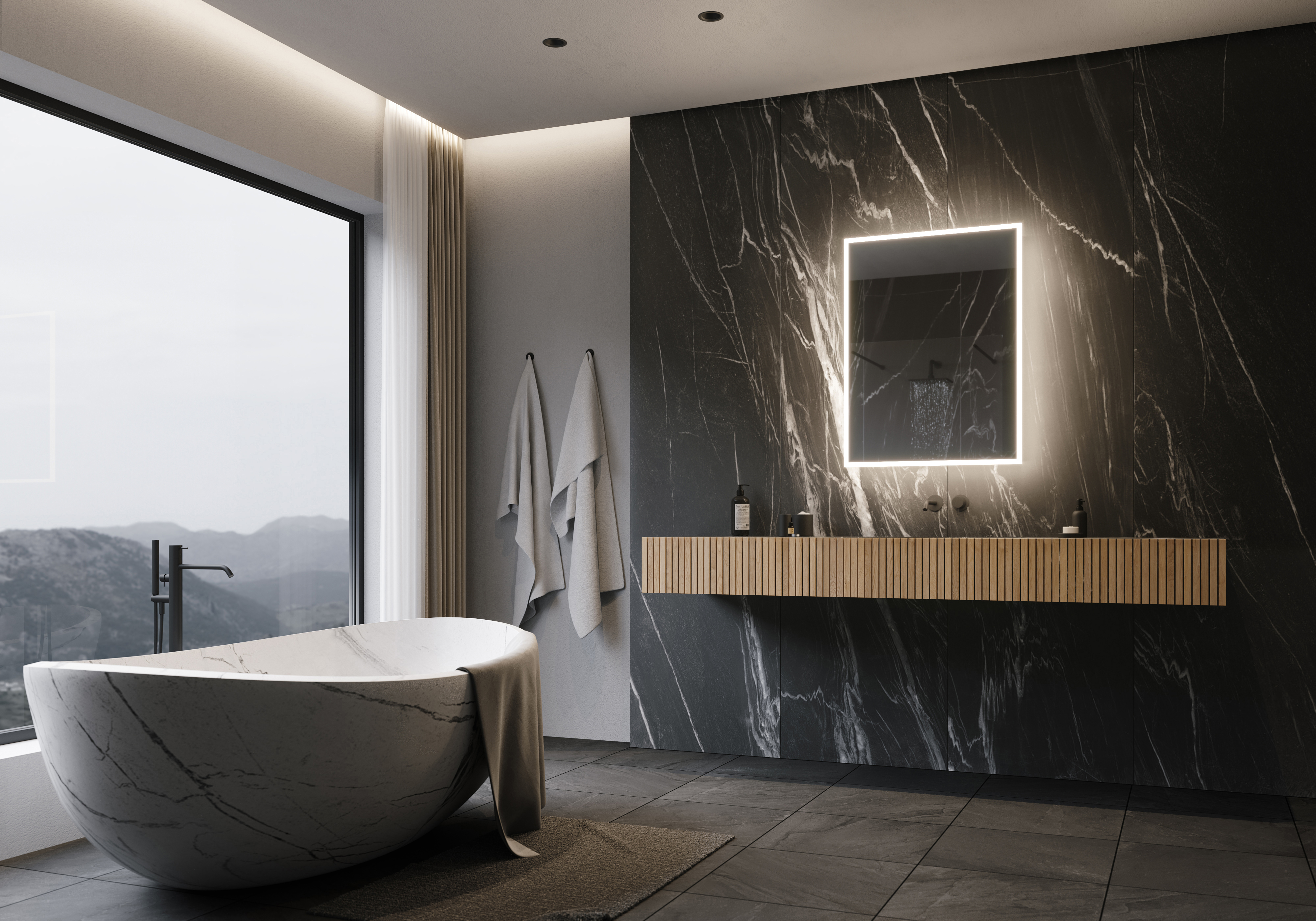 Delivering approximately 4970 lumens with a high CRI of 90+, the Galaxy cabinet ensures bright, accurate lighting perfect for grooming and makeup application. Its dimmable feature, compatible with standard MLV/TRIAC dimmer switches, allows you to adjust the brightness to suit any mood or time of day.