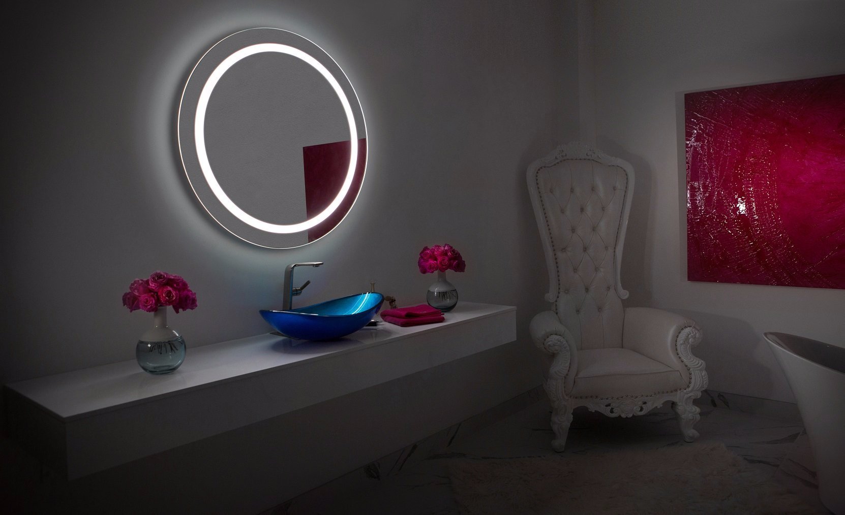 The Harmony Round mirror blends graceful design with high-performance lighting for a polished, practical upgrade.