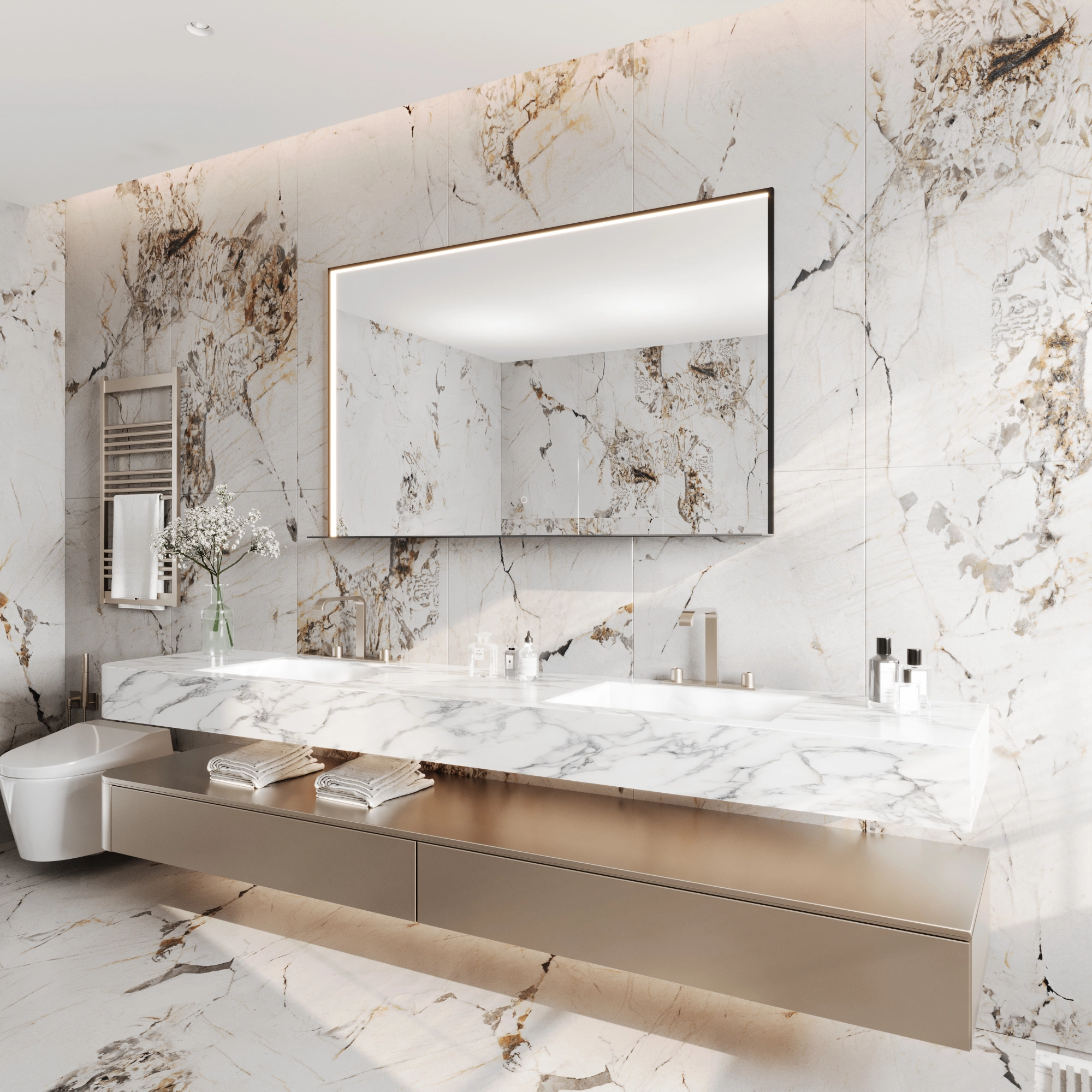 Featuring front-lit LED illumination with adjustable CCT color temperature (3000K-6000K), the Linea Ledge delivers both clarity and ambience. Its integrated touch sensor allows for smooth control of brightness and tone, while the wireless induction charger embedded in the shelf conveniently powers your smartphone without clutter or cables.
