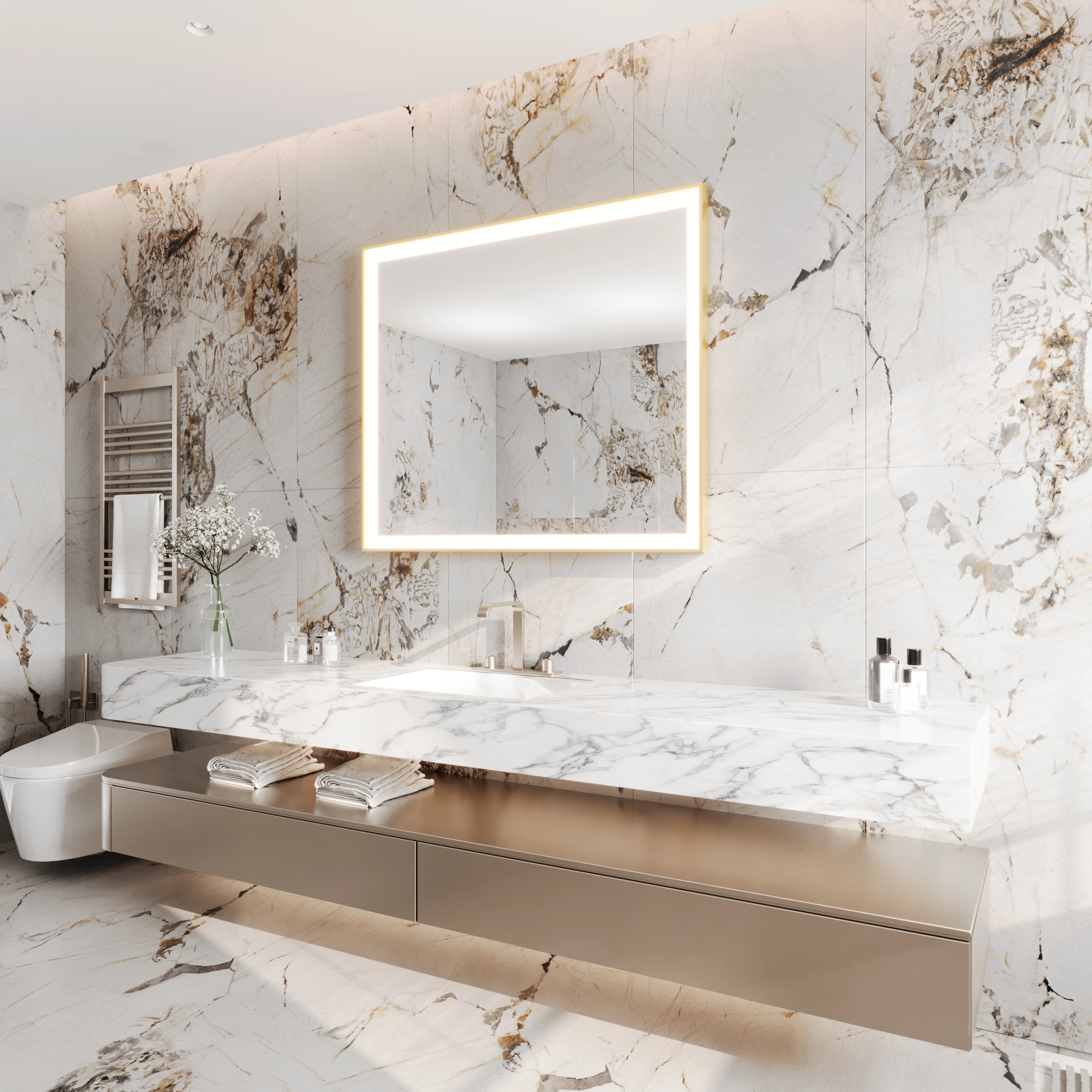 Featuring powerful LED lighting at approximately 5340 lumens and a high CRI of 90+, this mirror delivers bright, true-to-color illumination ideal for grooming and makeup. It's fully dimmable with any standard MLV or TRIAC wall switch, allowing you to adjust brightness to suit any mood or time of day.