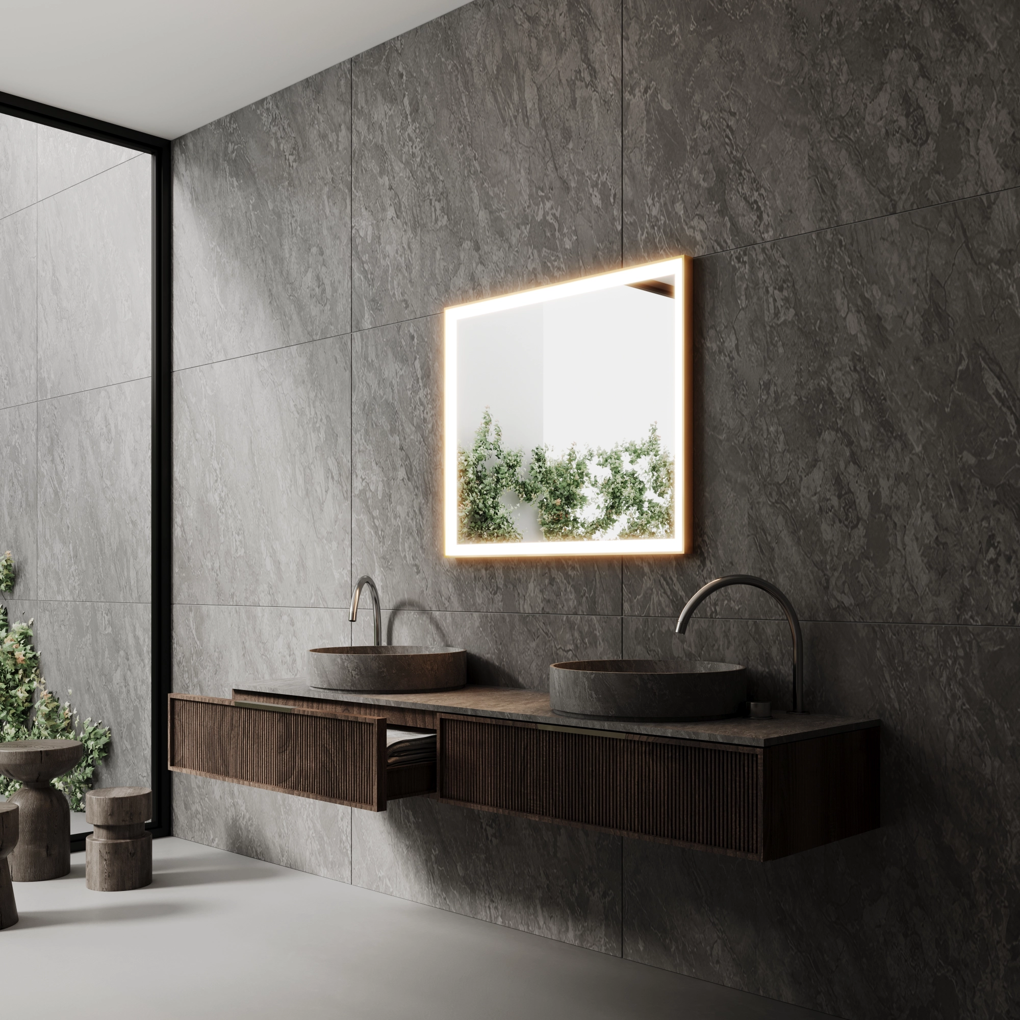 Add bold sophistication to your space with the Chic 40 x 35 LED Vanity Mirror in matte black. Its clean rectangular lines and rich dark frame create a striking modern look, perfect for bathrooms, powder rooms, or dressing areas.